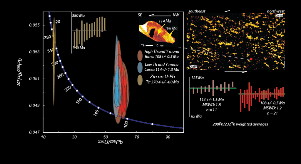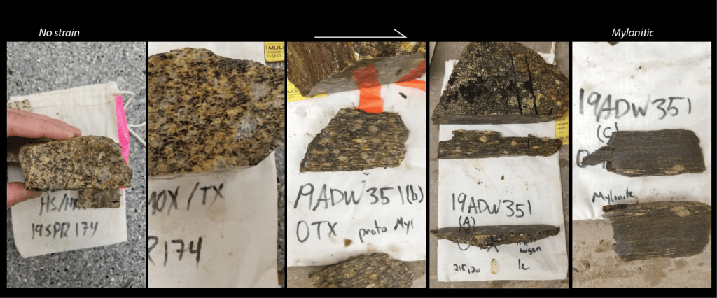 Ductile shear zones are common features of exhumed middle to lower crust and upper mantle, and are delineated by an increase in amount of apparent finite strain relative to wall rock. Essentially, shear zones accommodate varying amounts of displacement, can often juxtapose distinctive packages or rocks and terranes, facilitate fluid and magma flow, and thus are central to our understanding of plate tectonics and crustal evolution. Shear zones range in size (structural thickness/width), deformation mechanisms, coaxiality, length, and displacement that impart a first order control on the rheological and mechanical characteristics of a given region. My research program in shear zones is focused on the development and tectonic implications for geometric features of shear zones and petrochronology of these important features. Research in the Athabasca Granulite terrane, Adirondack Mountains, and northern Cordillera all have aspects focused on understanding shear zones, and collectively provide natural laboratories to compare shear zone development and evolution at various crustal levels.